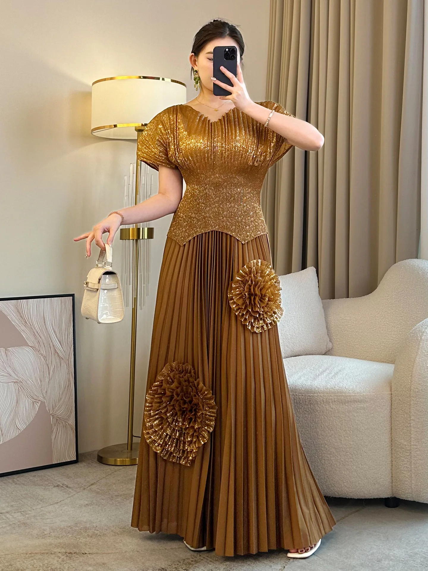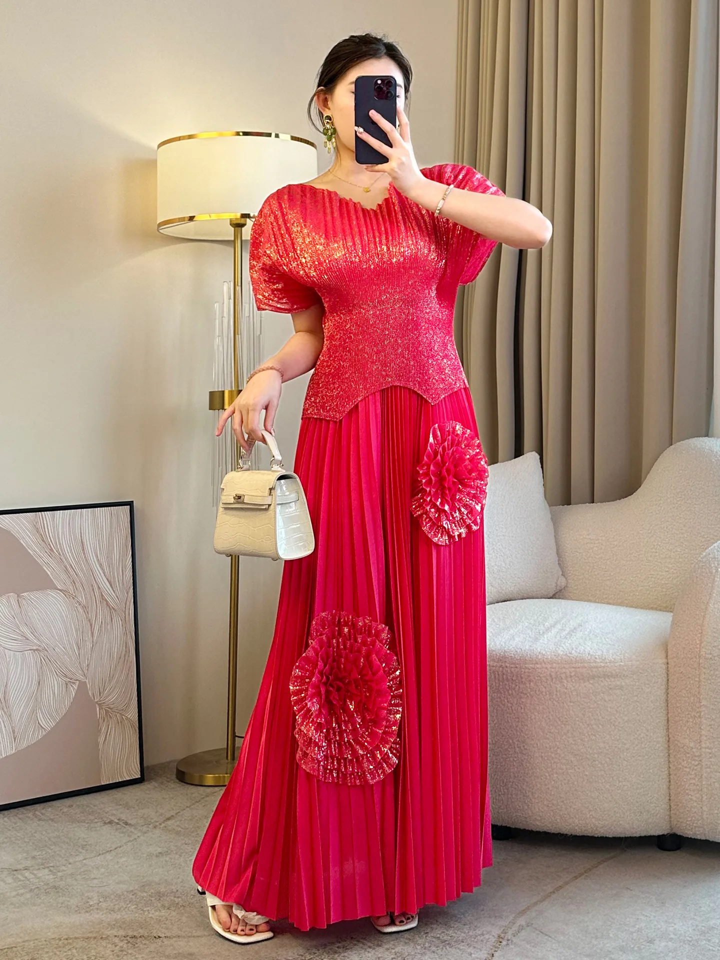 2026 Elegant Loose Slimming Two-Piece Set Heavy Industry Nail Flower Pleated Light Luxury Top Overskirt Summer Short Solid
